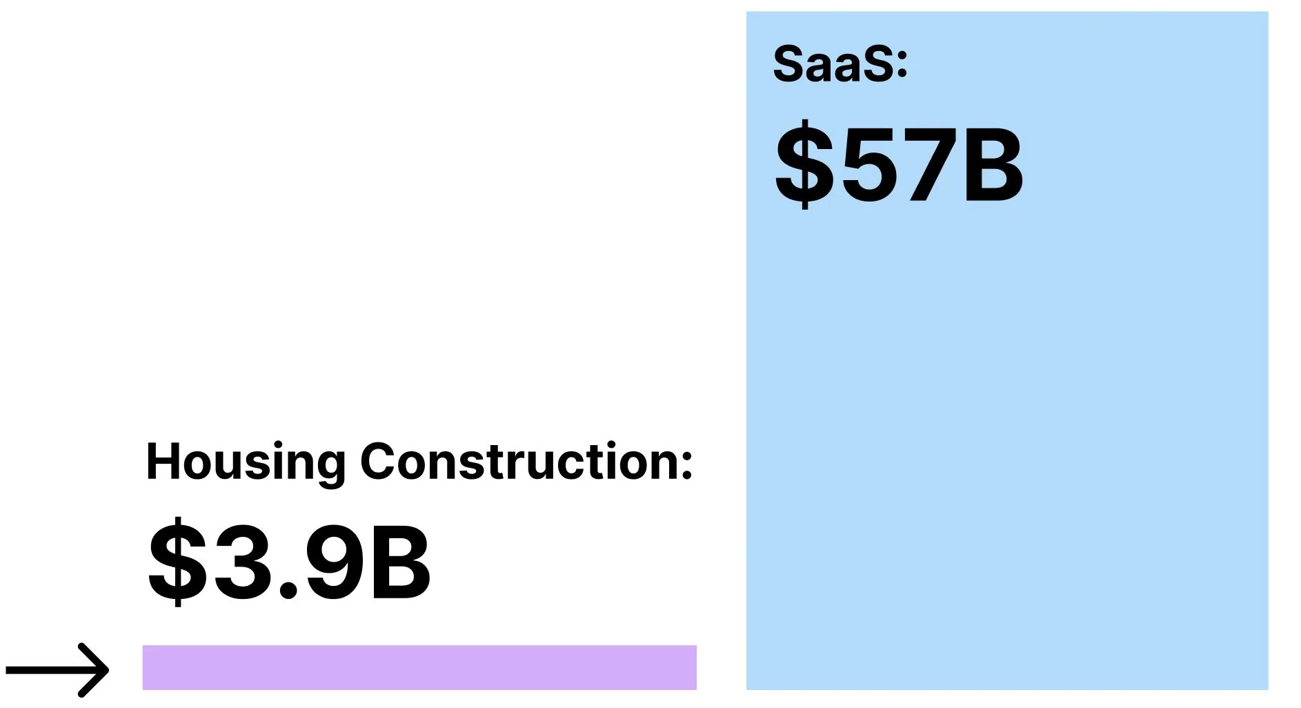 We found 60 Series A startups in the U.S. housing construction space in the last 10 years. In total, they’ve raised $3.9B. Compare that to the U.S. SaaS market, where startups have raised $57B, roughly 14x more.